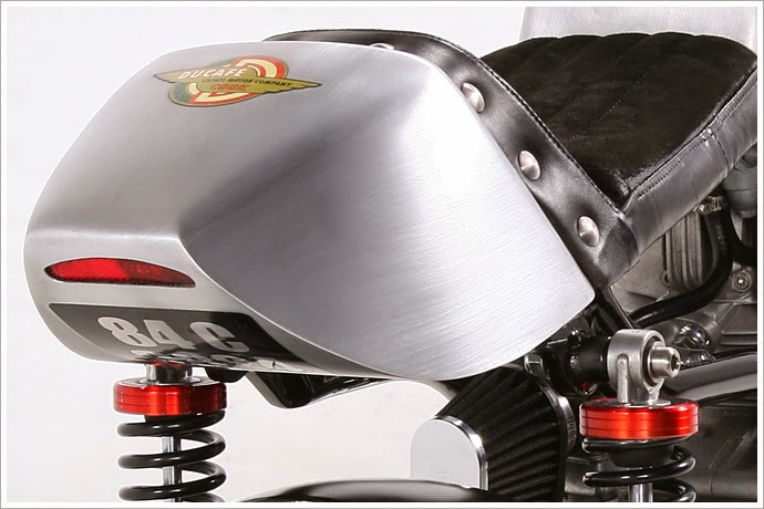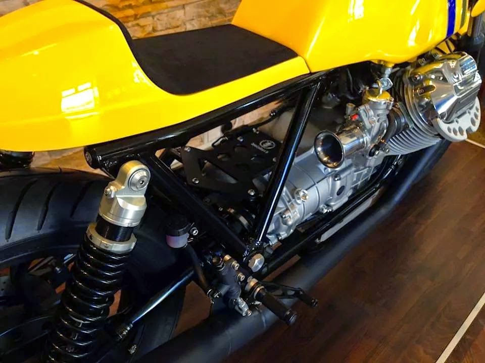 Tämä on rakennettu tonnisesta sport classicista, joka sinälläänkin on hieno pyörä. Moottori jo yksistään on kaunis, kun tekniset elementit on jätetty näkyviin: nokkahihnan kotelo kulkee sylinterin ulkopuolella, samoin öljynjäähdytin ja pari öljylinjaaja näkyvissä sekä kuivakytkin... Tällä tavoin uudetkin moottorit näyttävät (minusta) hienolta. Tekninen esteettisyys pitää päästää esiin. Liian usein hienot yksityiskohdat peitetään tasaisen pinnan alle.